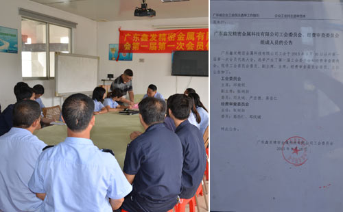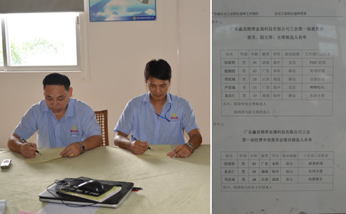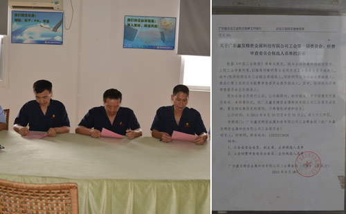 9月10日鑫發(fā)金屬公示了工會(huì)第一屆委員會(huì)、經(jīng)費(fèi)審查委員會(huì)的候選人的名單。9月14號(hào)召開廣東鑫發(fā)精密金屬科技有限公司工會(huì)第一屆第一次會(huì)員代表大會(huì),會(huì)議選舉產(chǎn)生第一屆工會(huì)委員會(huì)和經(jīng)費(fèi)審查委員會(huì)的主席、副主席、委員和主任。