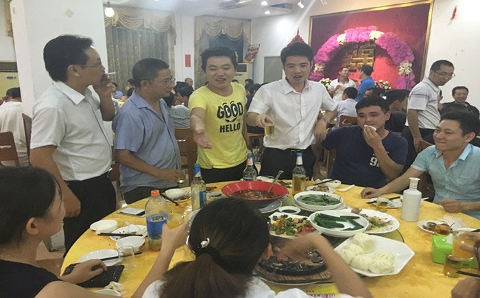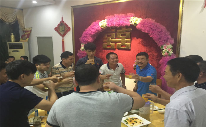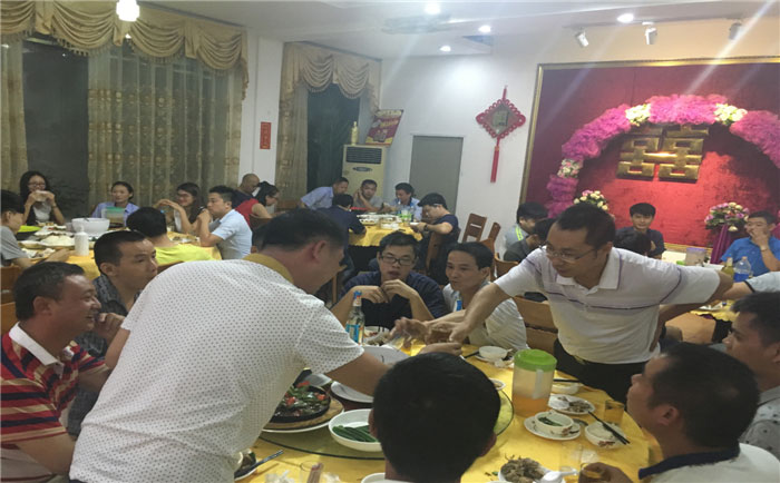 當晚的慶功宴主要分為3個篇章:辛總總結,伍助補充,領導祝酒。辛總和伍助就9月的生產情況作了總結,帶我們回顧了上月的各種甜酸苦辣,展望了未來的發(fā)展前景和宏偉目標。還不忘向全體同事的付出表示衷心的感謝與祝福。晚會上大家一邊吃著豐盛的晚餐,一邊接受著領導的祝酒,觥籌交錯間歡聲笑語不斷,湯總、伍助和毛經理還逐桌祝酒,言語之間擋不住喜悅之情。