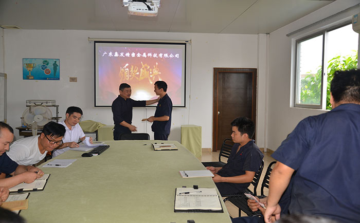 辛總借此機(jī)會,對鑫發(fā)的管理層和優(yōu)秀技工提出了奴才和人才思想戰(zhàn)略,希望鑫發(fā)員工在自己的工作崗位上,人人成為人才,成為精英。